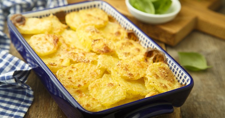 - Yumurtaları, süt, tuz ve karabiber ilavesiyle çırpın. Halka halka doğradığınız patatesleri bu karışımla harmanladıktan sonra yağladığınız fırın tepsisine alın.