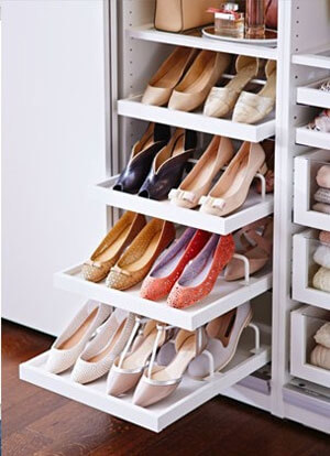 - Çok fazla ayakkabınız varsa, onlar için de ayrıca bir sistem kurabilirsiniz. Böylece hem onlara zarar vermeden saklamış olursunuz hem de hepsi gözünüzün önünde olur.
