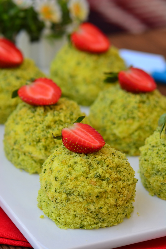 Kestiğiniz yuvarlak keklerin üstüne önce krema koyun ve ardından , un haline getirdiğiniz kek kırıntılarına bulayın.