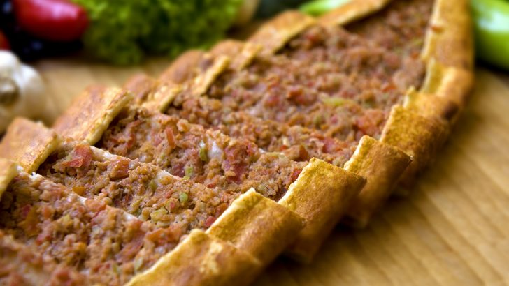 Hamuru için, derince bir kaba kuru mayayı ve toz şekeri alın, üstüne ılık suyu ekleyin, karıştırın ve kabarması için bir kenarda 10 dakika kadar bekletin. Ardından üstüne sıvı yağı ekleyip, bir çırpma teli ile çırpın. Sonrasında 2 su bardağı unu ve tuzunu ekleyip, yoğurmaya başlayın. Kalan 1 su bardağı unu, kontrollü olarak ekleyerek ele yapışmayan bir hamur elde edene dek yoğurun. Yaklaşık 5 dakika kadar yoğurmanız gerek. Yoğurduktan sonra, üstünü örtün ve ılık bir yerde 45 dakika kadar mayalanmaya bırakın. Hamur mayalanırken iç harcını hazırlayın. İç harcı için; soğanı, domatesleri ve biberleri ince ince doğrayıp, kıyma ile karıştırın. Sarımsağı rendeleyin, yağı ve suyu da ekledikten sonra, baharatlarını ilave edip, güzelce karıştırın. İç harcınız hazır. Mayalanmış olan hamur alın, hafifçe tezgâhta yoğurun ve silindir gibi uzatıp, 6 eşit parçaya kesin. Her bir parçayı elinizle yoğurup, yuvarlayın ve bir merdane yardımı ile uzunca açın, pide şeklinde ve tepsinizin boyutuna göre, ne kadar ince açarsanız o kadar iyi. Yağlanmış ve un serpilmiş bir fırın tepsisine, hazırladığınız hamurları serin ve üstlerine hazırladığınız harcı paylaştırın. Kenarlarını kıvırarak kapatın ve pişerken açılmaması için, güzelce bastırın. Yumurta sarısı ile yağı çırpın ve bir fırça yardımı ile kenarlarına sürün. Önceden ısıtılmış 200 derece fırında kenarları kızarana dek yaklaşık 12 dakika pişirin. Fırından alır almaz, kenarlarına tereyağı sürün ve daha yumuşak bir pide istiyorsanız üstlerini temiz bir bezle örtün. Eğer çıtır seviyorsanız örtmeyin. İlk sıcağı geçtikten sonra servis edin.