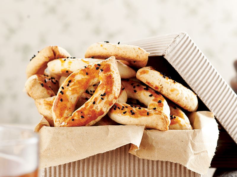 Tereyağını küp küp doğrayın. Geniş bir kasede kuru malzemelerden mahlep, tuz, şeker ve elemiş olduğunuz unu karıştırın. Tereyağını kasede karıştırdığınız kuru malzemelere parmak uçlarınızla yavaş yavaş yedirerek ekleyin. Ardından sıvı malzemeleri eklemeye başlayın. Sirke, ayçicek yağı ve yoğurdu ekleyin. Tüm malzemeleri karıştırarak bir araya getirdiğinizde yumuşak kıvamlı bir hamur elde etmiş olmalısınız. Hamur hazır olduğunda üzerini kapatarak buzdolabında 1 saat dinlendirin. Buzdolabından çıkardıktan sonra hamurun oda ısısına gelmesini bekleyin. Sonrasında şekil vermeye başlayabilirsiniz. Yağlı kağıtları yerleştirdiğiniz fırın tepsilerinizi bir kenara alın. Hazırladığınız hamurdan istediğiniz çatal kurabiye boyutuna göre parçalar kopararak şekil vermeye başlayın. Hamurdan kopardığınız parçaları uzunlamasına açın ve iki uzun hamur şeridini birleştirerek çatal kurabiye haline getirin. Tepsiye yerleştirdiğiniz çatal kurabiyelerin üzerine yumurta sarısı sürün ve ardından çörek otunu üzerlerine serpin. Önceden ısıttığınız 180 derece fırında yaklaşık 20 dakika kadar pişirin. Çatal kurabiyeniz servise hazır, afiyet olsun!