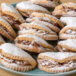 Hamur için un hariç tüm malzemeleri karıştırın azar azar un ekleyip yoğurun. Hamuru 3/4 parçaya bölün. Videodaki gibi açın ve bıçakla kesikler atıp elmalı harcı ekleyin. Sonra yavaşça kurabiyeleri kesin. 190 dereceye ayarladığınız fırında pembeleşene kadar pişirin. Afiyet olsun