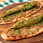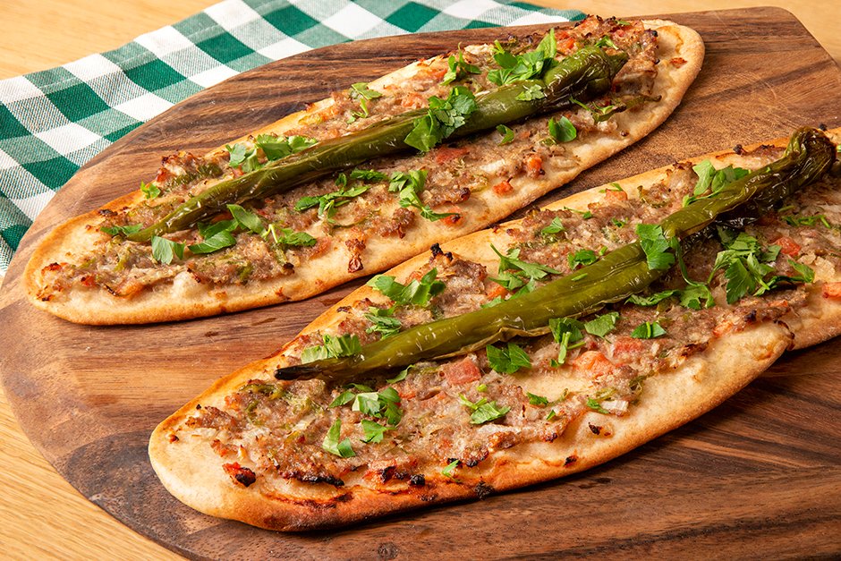Etli ekmeğin hamuru için; elenmiş unu derin bir karıştırma kabına alın. Orta kısmını elinizle açın. İnstant maya ve ılık suyu azar azar ilave ettikten sonra elinizle karıştırarak hamuru toparlanana kadar yoğurun. 8 eşit parçaya böldüğünüz hamuru, unlanmış mutfak tezgahı üzerine alın. Kurumaması ve mayalanması için üzerlerini nemli bir bezle örttükten sonra oda sıcaklığında 30 dakika kadar bekletin. Etli ekmeklerin üzeri için; kuru soğanı oldukça küçük parçalar halinde doğrayın. Ortadan ikiye kesip çekirdeklerini çıkardığınız yeşil biberleri ince ince kesin. Kabuğunu soyup küçük parçalar halinde doğradığınız domateslerin suyunu süzdürün. Ayıkladığınız maydanoz yapraklarını incecik kıyın. Dana kuşbaşı etini, keskin bıçaklar ya da zırh yardımıyla oldukça küçük parçalar haline getirin. Etle birlikte doğramış olduğunuz tüm malzemeyi geniş bir karıştırma kabına alın. Tereyağı, tuz, karabiber ve pul biber kattığınız harcı elinizle karıştırın. Dinlenen hamurları, hafif bir şekilde unlanmış mutfak tezgahı üzerinde merdane yardımıyla uzunlamasına açın. Yağlı kağıt serili fırın tepsisine aldığınız hamurların üzerlerini hazırladığınız harçla eşit bir şekilde kaplayın. Pişme esnasında yanıklar oluşmaması için kenar kısımlardan akmamasına dikkat edin. Etli ekmekleri, önceden ısıtılmış 200-220 derece fırında 12-15 dakika kadar pişirin. Sıcağı sıcağına dilimledikten sonra sevdiklerinizle paylaşın.