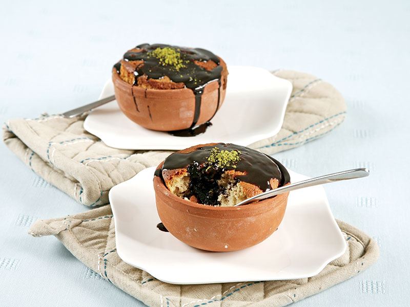 Öncelikle pudingi hazirlayalim. Soğumaya bırakalım. Arada karistiralim ki kabuklanmasin. Keki için yumurta ve şekeri iyice cirpalim. Eritilmiş ve sıcak olmayan yağı harcimiza dokelim(Sıvıyağ da olur) Sütü de ekleyelim tekrar cirpalim. Vişneyi unla karistiralim. Kabartma tozuyla birlikte harcimiza dokelim, karistiralim. Güveç kapları veya kare borcamda olur. Yağlı kağıt koyalım. Üzerine milfoyleri yerlestirelim. Çatalla delikler açalım. Kek harcimizdan bir miktar guveclere dokelim. Üzerine pudingi eşit olarak dokelim. Üzerine kalan kek harcini paylastiralim. Varsa fındık, fıstık ve visneyle susleyelim. 180 derecelik fırında 10 dk, sonra dereceyi 160 a düşürerek 25 dk daha pisirelim. (Fırına göre değişebilir. Kontrolü bırakmayın) Fırından alın. Ilikken ters çevirin. Sogudugunda servis edin.