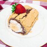 Geniş bir spatula veya başka birşeyle birküviyi kırmadan tatlıyı tepsiden çıkar, kestiğiniz pişirme kağıdının üzerine koyup tatlının genişliğinde muzu başa koyup sar
