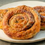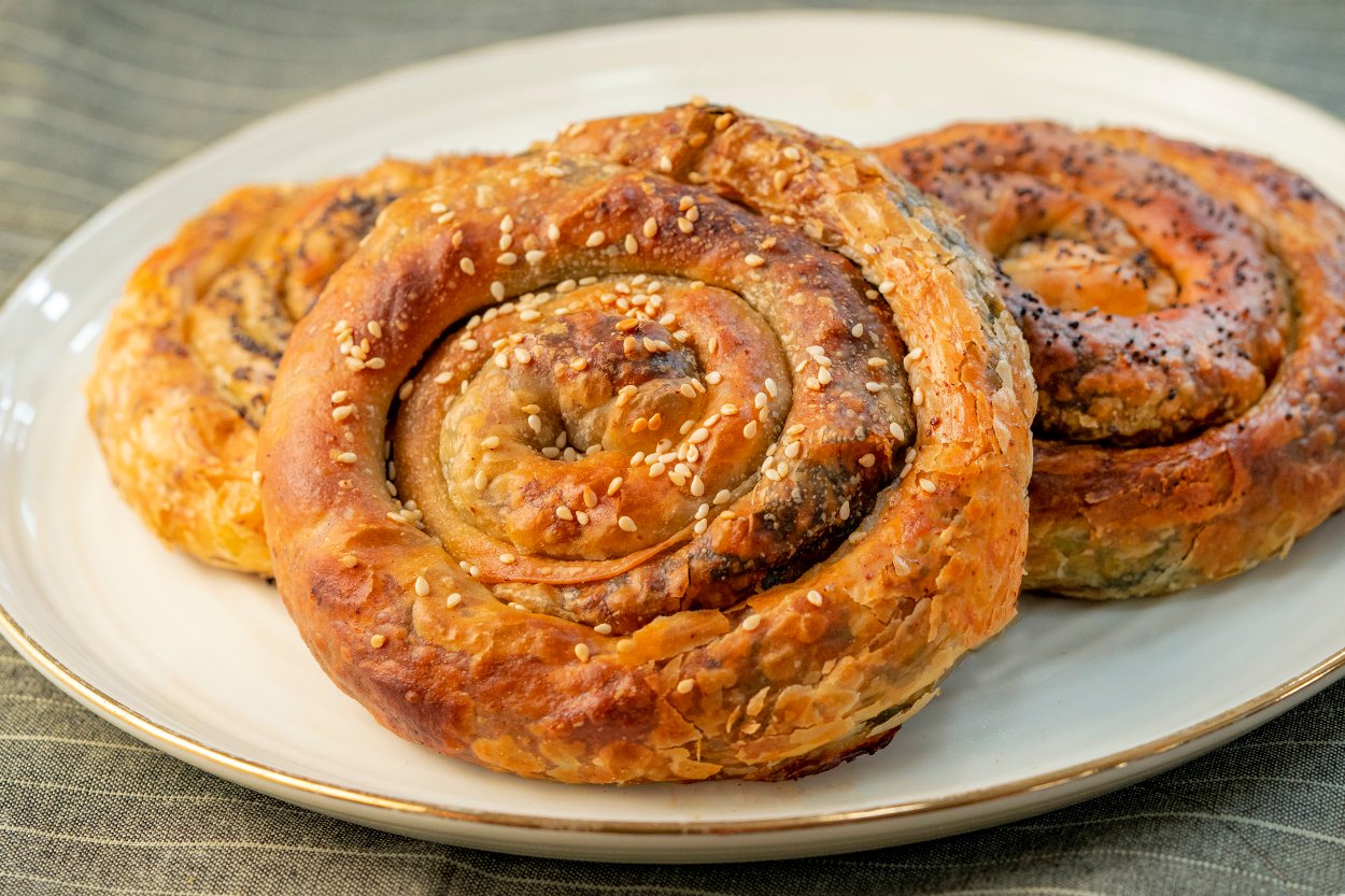 Hamurun üzerini kapatıp 10 dakika bekletelim 10 dakika sonra sonra hamurdan 16 yada 20 beze yapalım bezeleri tatlı tabağı büyüklüğüne açalım ,açtığımız bezeleri üst üste koyup üzerlerini iyice yağlayalım (kuru yer kalmayacak şekilde),yağladığımız hamurların üzerini kapatıp 10 dakikada bekletelim ,10 dakika sonra yağlı hamurları videodaki gibi açalım (bu hamur çok kolay bir şekilde açılıyor),videodaki gibi katlayıp şekil verelim üzerine yumurta sarısı sürelim ve 200 derecede üzeri kuzarana kadar pişirelim afiyet olsun.