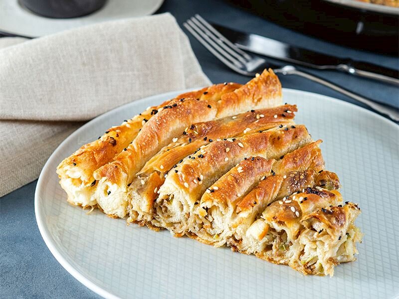 Hamuru için şeker maya ve ılık suyu yoğurma kabına koyup karıştıralım diğer malzemeleri de ilave edip ele yapışmayan yumuşak bir hamur elde edelim üzerini kapatıp iki katlı olana kadar mayalandıralım mayalanan hamurdan bir büyük beze 6 küçük beze yapalım üzerlerine eritmiş olduğumuz tereyağından sürelim (sıvıyağ da olabilir )bezeleri elimiz ile tatlı tabağı büyüklüğünde açalım üst üste dizelim her arayı mutlaka yağlayalım büyük bezeyi de açıp ayrı bir kaba koyalım üzerlerini kapatıp 10 dk bekletelim ,öncelikle büyük bezeyi 45 cm civarında yağ yardımıyla büyütelim tam ortasına küçük bezeleri yerleştirelim ikinci bezeden sonra iç malzemesi koyalım sonuncunun üzerine koymuyoruz büyük bezeyi kenarlarından 4 eşit parçaya bölüp güzelce kapatalım yağlı kağıt serilmiş tepsiye yerleştirelim ve hafif hareketlerle büyütelim tepsi boyutunda ya da siz nasıl isterseniz üzerine yumurta sarısı yoğurt karışımını sürüp çatal ile şekil verelim 200 derecede ısıtılmış fırında kızarana kadar pişirelim ilk sıcaklığı çıktıktan sonra dilimleyerek servis edelim deneyecek olanlara şimdiden afiyet olsun.