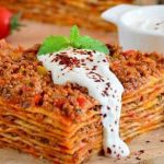 Hamur için su, süt, maya ve şekeri derin bir kaba alıp karıştırın,Unu azar azar ekleyerek karıştırmaya başlayın,Unun yarısında tuzu ve sıvı yağı ekleyin,Kalan unu da azar azar ekleyerek yumuşak bir hamur elde edene kadar yoğurun,Hamuru top yapı üzerini örtün ve 30-45 dk. kadar dinlendirin,Bu sırada kıymalı harç için bir tavada sıvı yağı kızdırın,Kıymayı ekleyip sürekli karıştırarak, topakları ezerek suyunu salıp çekene kadar kavurun,Minik minik doğradığınız soğan ve biberi ekleyip yumuşayana kadar kavurun,Salçayı ekleyip kokusu çıkana kadar kavurun,Toz biberi ekleyip karıştırın,Küçük küçük doğradığınız domatesleri ekleyip birkaç dk. kavurun,Suyunu ekleyip karıştırın ve kapağını kapatıp kısık ateşte 10-15 dk. pişirin,Tuzunu ve baharatlarını ekleyip karıştırın ve ateşten alın,Kabaran hamuru tekrar yoğurup 10 bezeye ayırın,Bezelerden birini alıp unladığınız tezgahta merdaneyle 24 cm’lik bir yuvarlak şeklinde açın,Lavaşların sığabileceği bir tavayı ocakta kızdırın,Lavaşı kızgın tavaya alıp arkalı önlü pişirin,Tüm bezeleri aynı şekilde açıp pişirin,Kıymalı harcı ısıtın,Lavaşlardan birini bir tabağa alın,Üzerine kıymalı harçtan ince bir tabaka yayın,Üzerine bir lavaş daha koyup yine kıymalı harçtan yayın,Tüm lavaş ve kıymalı harcı aynı şekilde dizin,Bekletmeden, yanında sarımsaklı yoğurtla birlikte servis edin.