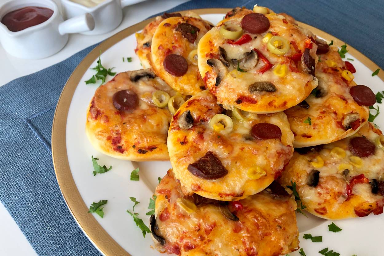 Yoğurma kabına önce ılık su süt maya ve şekeri alıp karıştırın. Ardından diğer malzemeleri ekleyin. Unu azar azar koyarak yumuşak bir hamur elde edin. İyice yoğurun. 1 saat kadar mayalayıp videodaki gibi şekil verin. 15 dk kadar da tepside mayalandırın. İstediğiniz malzemeleri pizzaların ortasına koyun. Kenarlarına yumurta sarısı sürüp susam serpin. Isınmıç fırında kızarana kadar pişirin. Fırından çıkınca üzerini 5 dk örtüp dinlendirin afiyet olsun