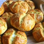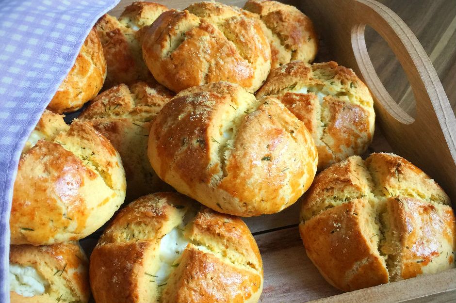 Tüm harcı karıştırın. Yumuşak bir hamur elde edin. 200 derecede ısıtılmış fırında pembeleşene kadar pişirin. Afiyet olsun