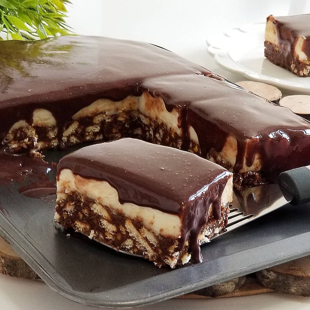 Öncelikle derin bir tencerede Tereyağ eritilir. Üzerine süt şeker ve kakao eklenip pişirilir. Kaynamaya başlayınca ocaktan alınıp ılıması için bekletilir. Ilıyan sütlü harcımıza elimizle parçaladığımız bisküviler eklenir ve karıştırılır. Yağlı kağıt serilmiş kelepçeli kalıba veya orta boy borcama büskivili karışım konulur üzeri düzleştirilir. Daha sonra muhallebi malzemeleri pişirilir en son tereyağ eklenip ocak kapatılır ve mikserle 1/2 dk çırpılır. Kelepçeli kalıptaki bisküvilerin üzerine muhallebi dökülür. Sonra Çikolata sos için krema kaynama noktasına gelene kadar ısıtılır. Daha sonra çikolata eklenip eriyene kadar karıştılır. Muhallebinin üzerinede en son bu sos dökülür ve buzdolabında dinlendikten sonra afiyet ile tüketilir.misafirlerinize Bir gün önceden de hazırlayabilirsiniz soğuduktan sonra üzerini streçle kapatıp buzdolabında saklayabilirsiniz. Afiyet şifa olsun…