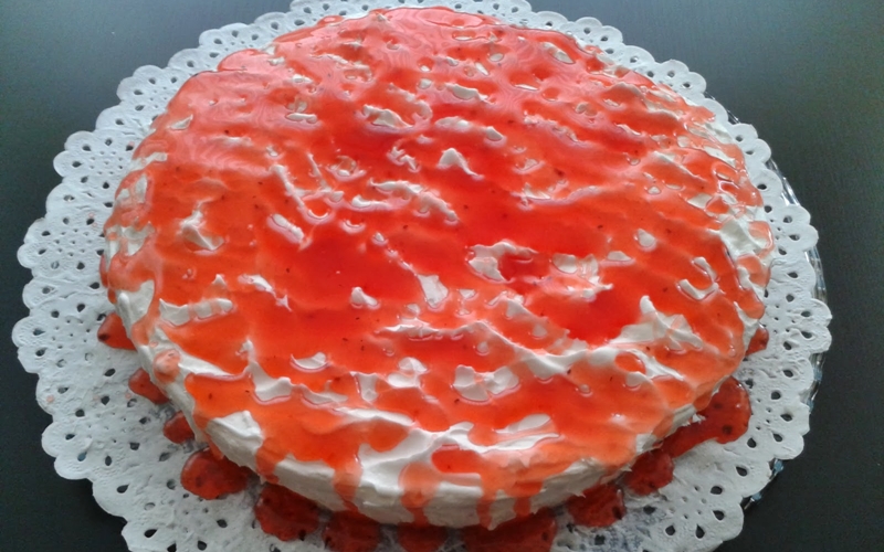 İlk olarak pastanın kekini hazırlıyoruz.. Yumurta ve toz şekeri bir kaba alarak 3-4 dakika kadar mikserle çırpıyoruz. Ardından sıvı yağı ve yoğurdu ekleyerek tekrar çırpıyoruz. En son un, kabartma tozu ve vanilya da elenerek karışıma ekliyoruz. Yağlanmış tart kalıbına kek harcını dökerek 160 derece fırında 20-25 dakika kadar pişiriyoruz (keki tart kalıbında yapmak önemli ve kek fazla kızarmadan fırından alıyoruz)