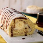 Kekin üzerine keramanın yarısını sürün. Muzu en başa yerleştirip sarın. Dışınıda kırmadan kaplayın.