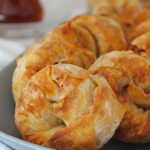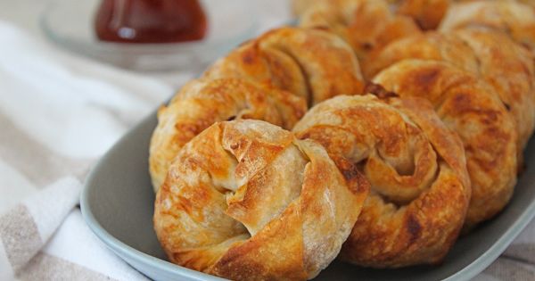 4 adet hazır yufka( yufkaları 2 kat üzerinden yapıyoruz.ilk yufkayı soslayıp üzerine 2. Yufkayı seriyoruz, 8 parçaya bölüyoruz)