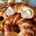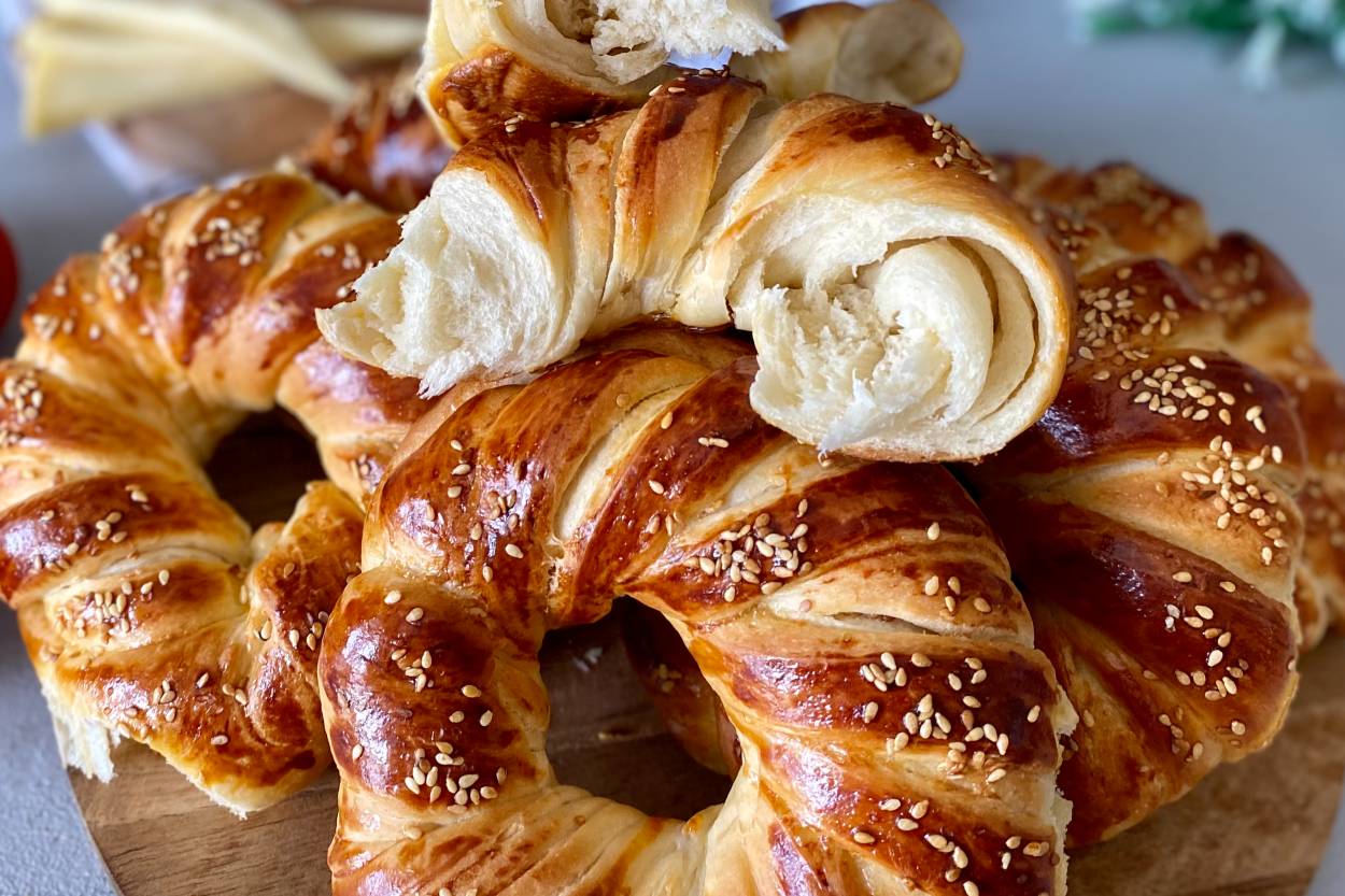 Hamuru için ılık su ve mayayı karıştıralım diğer malzemeleri ekleyip unu kontrollü bir şekilde ilave edip ele yapışmayan yumuşak bir hamur elde edelim hamurun üzerini kapatıp 10 dakika bekletelim.Dinlenen hamuru 12 parçaya bölüp beze yapalım bezeleri tatlı tabağı büyüklüğünde açtıktan sonra ,tereyağını eritip sıcak iken sıvıyağı karıştıralım ılık bir yağ karışımı oluyor bu yağ ile uygun bir tepsiyi yağlayıp açtığımız hamurları heryerini yağlayıp üst üste yerleştirelim ,üzerini kapatıp 10 dakikada bekletelim ,dinlenen hamurları videodaki gibi açalım (çok fazla büyütmeyiniz 25-30cm olması yeterli )rendelenmiş kaşar peyniri yada beyaz peynir koyup videodaki gibi şekil verelim,tümünü hazırladıktan sonra 10 dakika tepsi mayası için bekletelim ,yumurta sarısını kalan yağ ile karıştırıp üzerine sürelim 180 derecede kontrolü pişirelim .