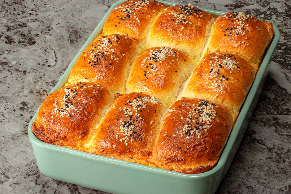 Yumuşak bir hamur yoğurun. Üzerini kapatıp iki katına çıkana kadar mayalandırın. Şöyle bir yoğurup yuvarlayın. Yağlanmış tepsiye dizin. Üzerini kapatıp 20-30 dk mayalandırın. Sos için malzemeleri bir kapta karıştırıp hamurların üzerine dökün. En son susam serpip 180 derecelik fırında kızarana kadar pişirin. Piştikten sonra tekrar üzerini örtüp bir 5 dk dinlendirin. Afiyet olsun