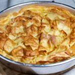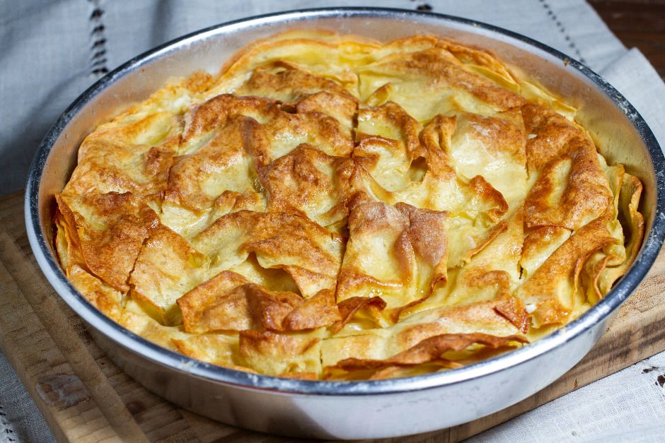 Un hariç diğer malzemeleri yoğurma kabına alıp iyice çırpalım ardından kontrollü olarak un ekleyip yumuşak ele yapışmayan bir hamur hazırlayalım 14 eşit bezeye yapalım ve üzerini örtüp 20 dakika dinlendirelim dinlenen hamurları tezgah un serperek açabildiğimiz kadar açalım ve bir kenara alalım tüm yufkalara açtıktan sonra büyükçe bir tencereye kaynar su alalım içerisine 1 tatlı kaşığı tuz 1 tatlı kaşığı sıvı yağ ekleyelim ve yufka larımızı tek tek 2-3 dakika kadar pişirip soğuk suya alalım suyunu süzelim yağlanmış 40cm tepsiye 1 adet kuru yufka serelim ardından haşladığımız yufkaları tek tek tepsimizi alalım aralarına sıvı yağ karışımından sürelim 5 ya da 6 kata geldiğimizde iç harcını ekleyelim kalan yufkaları da aynı şekilde haşlayıp böreğin üzerine aralarını yağlayarak bekleyelim en son üzerine kalan yağı sürelim önceden ısıtılmış 185°alt üst ayarda pişirelim Ben böreğin üzeri kızarınca ters çevirip tekrar fırına verdim altı üstü Nar gibi kızarınca fırından aldım ortalama 30 35 dakikada pişti ev sıcak çıkınca servis edebilirsiniz Afiyet olsun