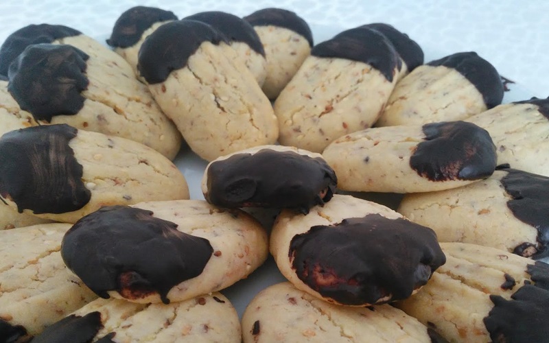 Önce sıvı malzemeleri yoğurma kabında karıştırın. Sonra kuru malzemeleri ekleyerek yumuşak bir hamur yoğurun. En son susam ve cevizi ekleyerek yoğurun. Hamura videodaki gibi şekil verin ve pişirme kağıdı serili tepsiye dizin. 180 derecelik fırında hafif pembeleşene kadar pişirin. Kurabiyeler soğuduktan sonra çikolataya batırıp yine pişirme kağıdı üzerine dizin ve buzdolabında soğutun. Kurabiyeler kağıttan ayrılana kadar buzdolabında kalsın. Sonrasında oda sıcaklığında muhafaza edin afiyet olsun