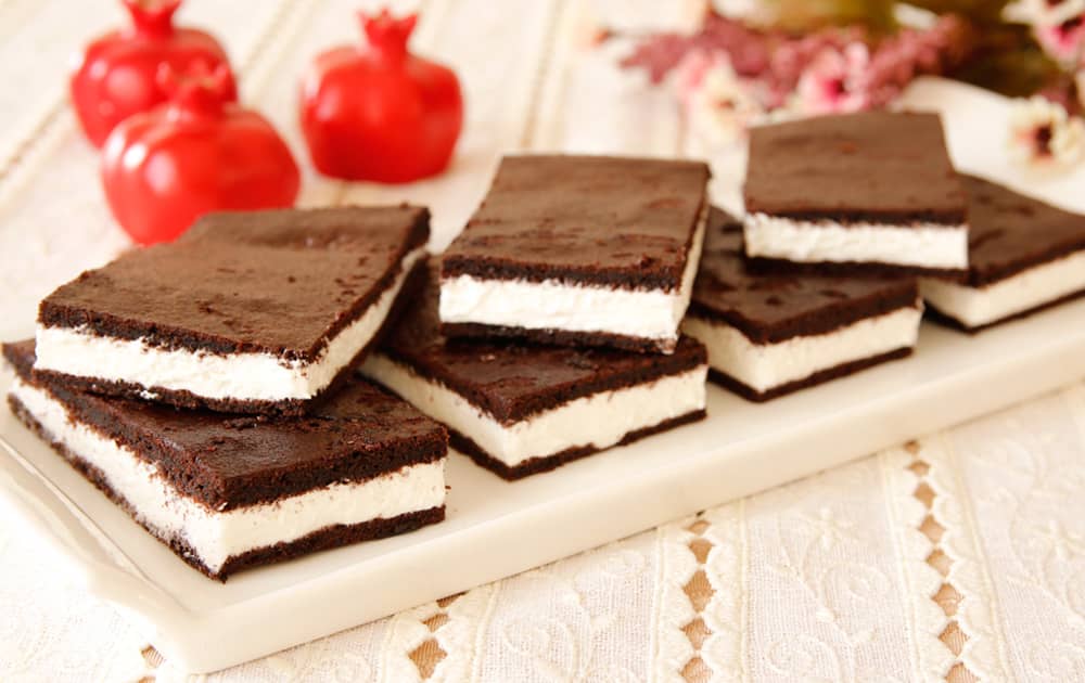 Hazırlanışı: Öncelikle krema malzemeleri mikserle yüksek devirde çırpılır ve koyu kıvama gelince soğuması için buzdolabına kaldırıyoruz. Kek için yumurta ve şeker krema kıvamına gelene kadar çırpıyoruz. Sonra diğer malzemelerde eklenip kekimizi yağlı kağıt serilmiş tepsiye döküyoruz. Ben dikdörtgen borcamda yaptım kekim birazcık daha kalın oldu. 180 derecelik fırında 14-15 dakika pişiriyoruz. İlk 7. dakikada fırının kapağını açıp kapatın ki kekin ortası kabarmasın. Pişen kekimizin ilk sıcaklığı gidince yağlı kağıdı üzerine örtelim ve elimizle her yerini düzleyelim. Dilimlerini istediğiniz şekilde kesin ve 2 dilimin arasına kremasını sürün, mutlaka dolapta 2-3 saat dinlendikten sonra servis yapın. Bu tarifin kek hamuru pamuk gibi oluyor çok beğeniceksiniz. Afiyet olsun…