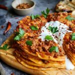 Her bir lavaşa kıyma sosu döküp kat kat dizin.