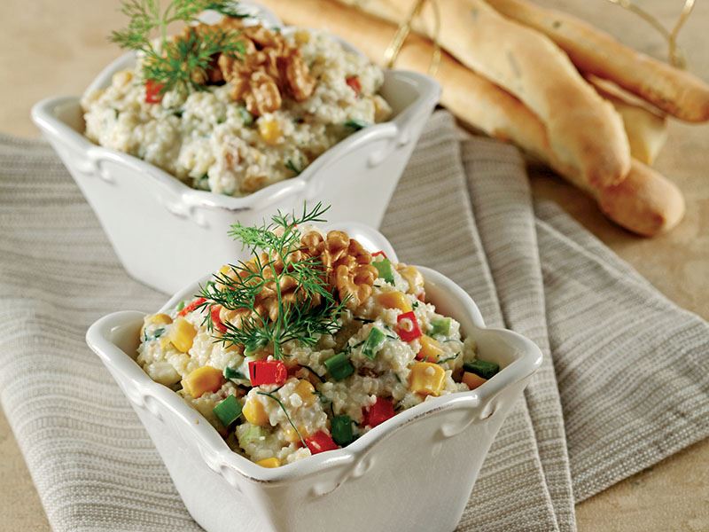 Bulgurumuzu yıkayıp süzüyoruz. Üzerine sıcak su ekleyip orta ateşte tencerede kapağını kapatıp pişirin. Suyunu tamamen çektiğinde ocağı kapatın. Ve buharıyla demlensin. İyice soğuktan sonra üzerini açın karıştırınz. Mayonezi sarmısaklı yoğurdu tuzu Bir kapta karıştırın. Sonra kornişon turşu maydanoz ve dereotunu doğrayın. Sarmısaklı yoğurt ve doğradığımız malzemeleri bulgurla karıştırın bu aşamada kırılmış cevizde ekleyin içine tekrar karıştırın. Servise yakın tereyağ veya zeytinyağını pulbiber ile kızdırıp salatamızın üzerine döküp servise hazır hala getirebilirsiniz. ❤️Afiyet olsun