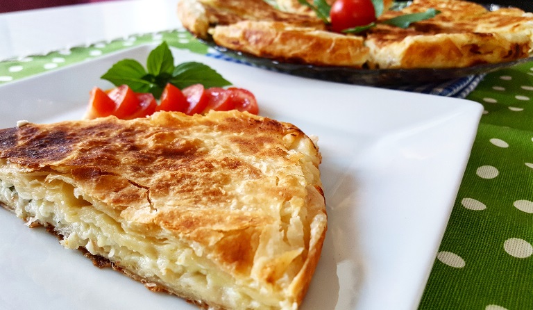 Diğer kısmını pişirmek için de büyük ve düz bir tabak alın. Böreğin üzerine tabağı koyup hızlı bir şekilde ters çevirin. Çiğ kalan kısmı da kısık ateşte kızarana kadar pişirin. Afiyet olsun.